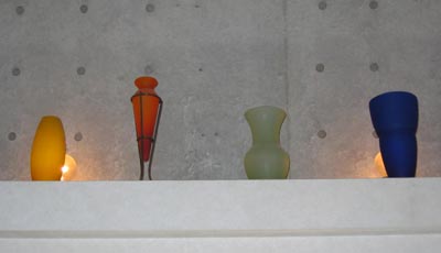 天井を照らす間接照明の前にも ガラスのビンを。 |